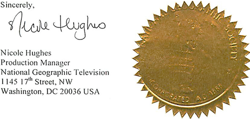 Letter of recommendation from National Geographic
